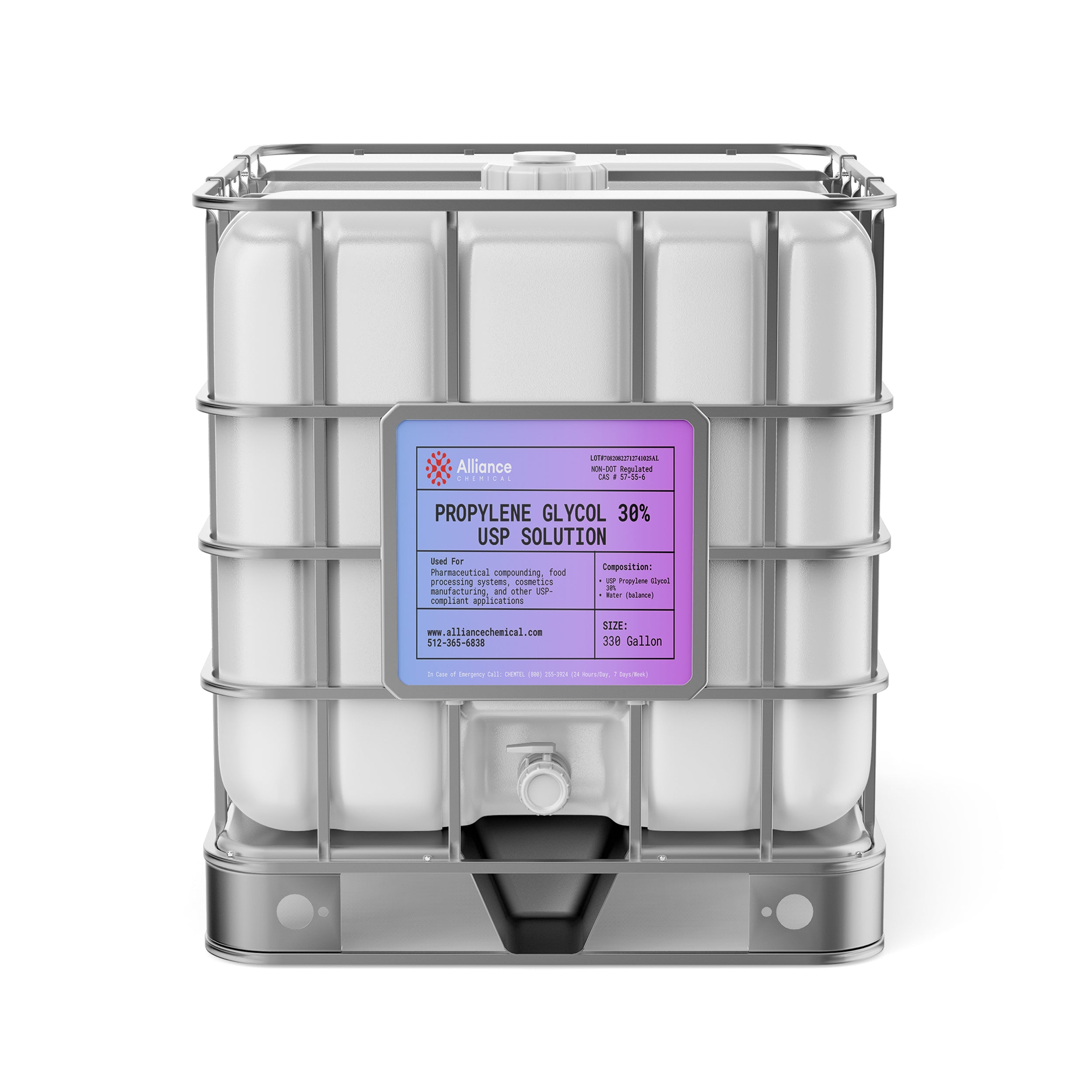 30% Propylene Glycol USP Grade is a clear, colorless liquid comprising propylene glycol and water in a defined 30% solution. It is produced to USP-grade specifications, ensuring a high level of chemical purity suitable for pharmaceutical, cosmetic, and analytical applications. The product exhibits a low toxicity profile and excellent solvent properties, making it a versatile humectant and solvent across multiple industries. Its composition is tightly controlled to minimize impurities, supporting consistent formulation behavior and reliable performance in sensitive processes such as HPLC mobile phases, pharmaceutical vehicle applications, and antifreeze formulations. Typical assay accuracy is achieved through standardized titration methods, with a typical assay around 30 wt% and a narrow color specification, supporting traceability to USP-NF monographs. The product is designed for storage under controlled conditions to preserve quality and reduce microbial growth, ensuring consistent batch-to-batch performance. This USP-grade propylene glycol solution also aligns with industry standards to support quality control and regulatory compliance in regulated environments.